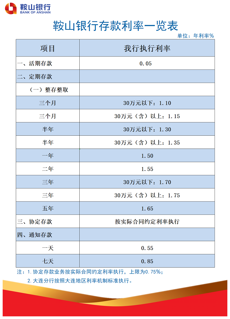 • 对公存款利率表 ...