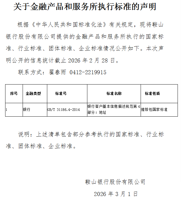关于金融产品和服务所执行标准的声明